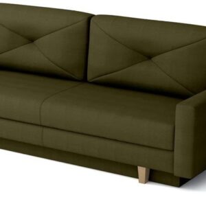 Kanapa Rozkładana Trzyosobowa Lartes Z Pojemnikiem Oliwkowa Welur Hydrofobowy 127453
