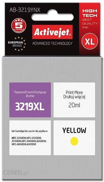 Tuszfirmy Activejet jest to w peni funkcjonalny i kompatybilny zamiennik z LC3219. Przeznaczony dla produktw marki Brother. Kolor Yellow;Dedykowany model Brother MFC-J6935DW;Brother MFC-J6530DW;Brother MFC-J6930DW;Brother MFC-J5930DW;Brother MFC-J5335DW;Brother MFC-J5330DW;Brother MFC-J5730DW;Pojemno [ml] 20;Linia Supreme;Rodzaj Cartridge;Wbudowany chip Tak;Wydajno [str/5% pokrycia] Nie dotyczy;Ilo 1;Obnika_imatrix tak;imatrix_03_ceny;imatrix_04_ceny