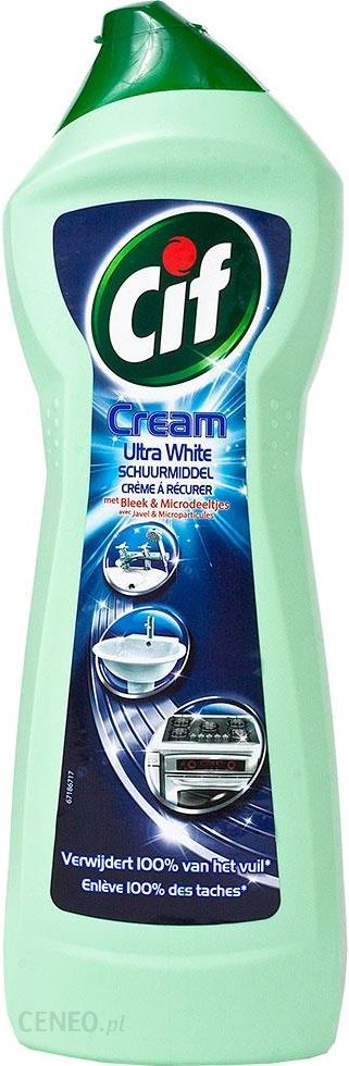 Cif mleczko do mycia powierzchni z wybielaczem 750mlMleczko czyszczące do kuchni i łazienek. Preparat wykorzystuje nowoczesną formułę mikrogranulek, które efektywnie likwidują najtrudniejsze zabrudzenia, m.in. kamień czy tłuste plamy. Środek nie wymaga szorowania, nie pozostawia smug i zacieków. Produkt z dodatkiem składników o właściwościach wybielających oraz nabłyszczających. Czyszczone powierzchnie pozostają czyste i odświeżone. Mleczko wydajne i proste w użyciu.Pojemność 750ml