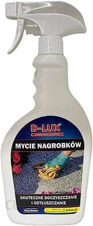 D-LUX Płyn do mycia nagrobków 500 ml przeznaczony jest do mycia: granitu, marmuru, lastriko i innych kamieni. Do wykorzystania także w domu i biurze – pozostawia miły zapach – surowce wykorzystane do produkcji preparatu Mycie Nagrobków pozwalają na wykorzystanie go zarówno na zewnątrz jak i wewnątrz pomieszczeń przeznaczonych do przebywania ludzi – do mycia parapetów, blatów i innych powierzchni wykonanych z kamienia.