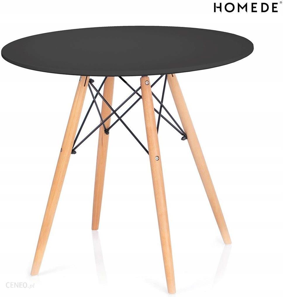 Zgodny z najnowszymi trendami design oraz zastosowanie niezwykle praktycznych rozwiązań to wyróżnik mebli marki HOMEDE. Niezwykle elegancki meble przyciągają uwagę oryginalnym kształtem i wzornictwem, a wysokogatunkowe i wyselekcjonowane materiały sprawiają, że meble są niezwykle trwałe, eleganckie i sprostają oczekiwaniom najbardziej wymagających Klientów.Stół TEBEMateriał: płyta MDF (blat), metal (rama), drewno bukowe (nogi)Kształt: okrągłyŚrednica blatu: 85 cmWysokość: 70 cmKolor blatu: czarnyKolor nóżek: naturalnyIlość nóżek: 4Marka: HomedeDodatkowe informacje: do zestawu dołączono akcesoria montażowe oraz czytelną instrukcję.