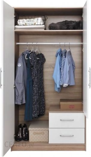 Szafa START SR3 z lustrem.Posiada dwa otwierane fronty oraz dwie wysuwane na prowadnicach rolkowych szuflady a także możliwość dobrania nadstawki.Szafa systemowa START to nietuzinkowe połączenie wielu szaf w jedną dużą bryłę taką jak na widocznym zdjęciu. Każdy z prezentowanych elementów ma dodatkowo nadstawki. Meble posiadają dużą ilość szuflad i frontów co sprawia, że znajdziemy w nich miejsce na ubrania, wieszaki, buty oraz wiele innych potrzebnych nam rzeczy. System dostępny jest w uniwersalnym białym kolorze z dębowymi wstawkami pasującymi do większości wnętrz. Dodatkowo duże lustra na frontach sprawiają, że pomieszczenie optycznie zostaje powiększone.Meble wykonane są z wysokiej jakości płyty wiórowej laminowanej odpornej na zarysowania, z obrzeżami typu ABS.Wymiary szafy START SR3-LUSTRO:(szer./wys./gł.) 100/190/56(Szerokość,Wysokość,Głębokość)Meble dostarczane są w paczkach do samodzielnego montażu, wraz z instrukcją oraz okuciami.