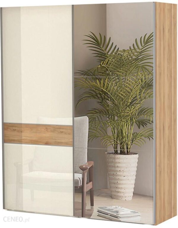 Szafa i meble uzupełniające są ważnym elementem wyposażenia każdego pomieszczenia, który posiada dużo miejsca do przechowywania. Różne rodzaje szaf świetnie sprawdzą się w różnych aranżacjach , np : szafa przesuwna, szafa narożna, szafa wnękowa, a może szafy młodzieżowe sam możesz zdecydować i wybrać odpowiednią szafę do domu, mieszkania, aby wnętrze Naszego salonu, przedpokoju cieszyły i spełniał swoją funkcję. Szafa z drzwiami przesuwnymi Gala Szafa w kolorze beige/pacific walnut to propozycja do pokoju dziennego, ale znajdzie swoje miejsce również w innym pomieszczeniu, jak na przykład – przedpokój czy garderobie. Materiał wykonania to płyta laminowana. Szafa posiada półki oraz drążek na ubrania. Mebel posiada lustro, które sprawi, że pomieszczenie stanie się optycznie większe. Nowoczesny styl mebli wpadnie do gustu każdemu, kto poszukuje eleganckiego, klasycznego, a zarazem nowoczesnego umeblowania. Idealnie wpasuje się w większość aranżacji. Przeznaczona do samodzielnego montażu. Mebel do samodzielnego montażu. Szafa i jej akcesoria W naszej ofercie znajdziesz różne meble, niezbędny element wyposażenia wnętrz. Wybierając szafy sam zdecydujesz czego potrzebujesz – szafy na ubrania są z wieszaki, szufladami, półkami, do wyboru sposób otwierania- drzwi przesuwne, drzwi uchylne, ilość drzwi, a także szafa z lustrem, które będą doskonale pasowały do wnętrz nowoczesnych. Szeroki wybór szaf w ofercie pozwala dopasować mebel nawet do trudnego do aranżacji pomieszczenia w zależności od potrzeb. Warto więc zapoznać się z całą ofertą i wybrać swoją wymarzoną szafę!