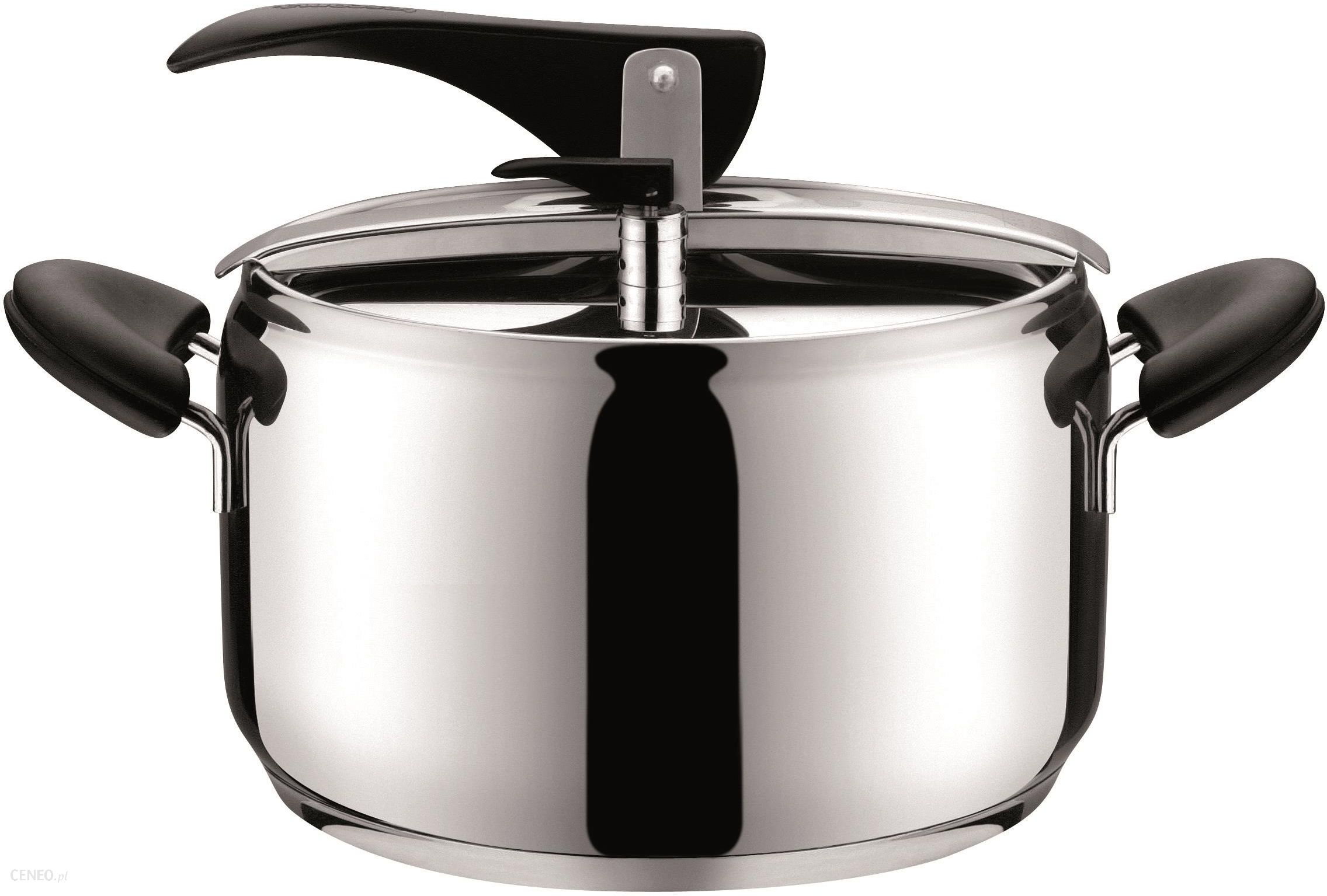 Szybkowar MAGNUM wykonany jest z wysokiej jakości stali nierdzewnejMa solidne uchwyty, które się nie nagrzewająPosiada grube, wielowarstwowe dno odpowiednie do wszystkich typów kuchenek – gazowych, elektrycznych, ceramicznych i indukcyjnychŁatwy i bezpieczny w obsłudze, o wysokiej niezawodnościGwarancja 5-letniaLinia produktów: MAGNUMTyp: pojedynczy szybkowarRóżne poziomy ciśnienia: nieKlasyfikacja: szybkowaryMateriał: plastik, stal nierdzewnaDługość (cm): 32Wysokość (cm): 19Średnica (cm): 22Pojemność (l): 5Gwarancja (w latach): 5Płyta indukcyjna: takPłyta gazowa: takPłyta elektryczna: takPłyta szklano- ceramiczna: takMycie w zmywarce: częściowoMasa (g): 1800TESCOMA to lider na światowym rynku producentów akcesoriów do kuchni i jadalni. Produkty TESCOMA charakteryzują się wysoką jakością w rozsądnych cenach i dbałością o detale. Asortyment to ponad 2000 produktów idealnie sprawdzających się nie tylko w kuchniach tradycyjnych, ale również w każdej gastronomii. Wszystkie produkty stworzone są po to, aby ułatwiać przygotowanie, serwowanie oraz prezentację potraw.
