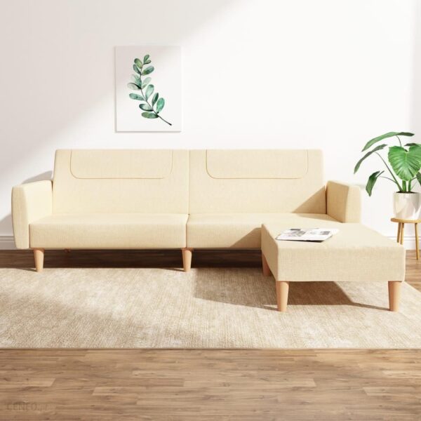 Vidaxl 2 Osobowa Sofa Z Podnóżkiem Kremowa Tapicerowana Tkaniną 3080590